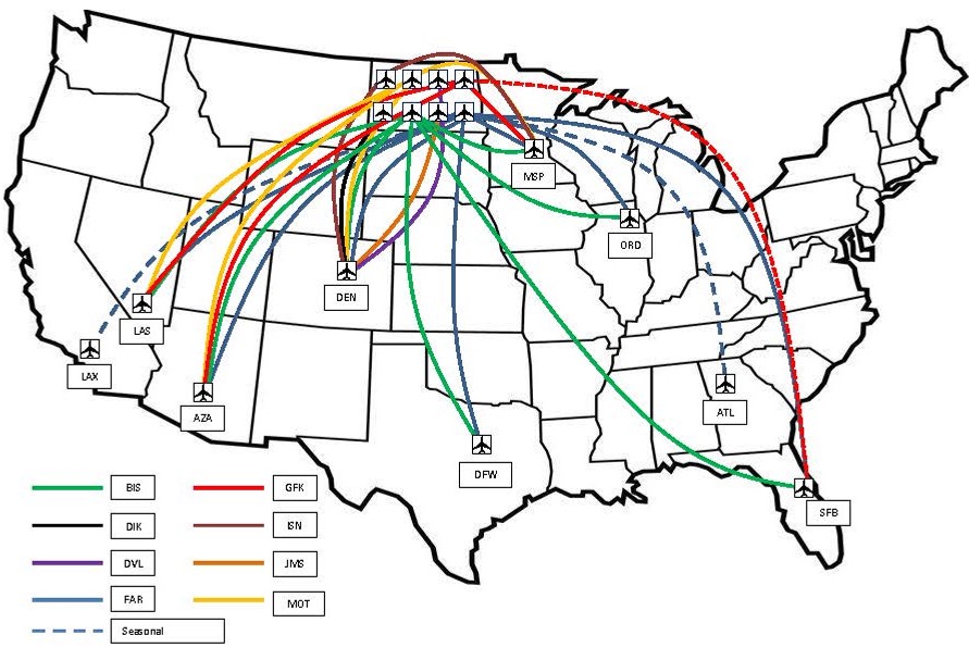 North Dakota Airline Route Map